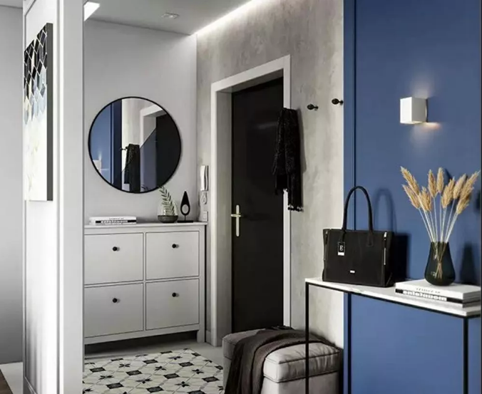 選一面橢圓形的試衣鏡放在玄關(guān),相當(dāng)漂亮實(shí)用,對(duì)于女主人來說簡(jiǎn)直是夢(mèng)寐以求,出門前在鏡子跟前調(diào)整著裝、妝容,也能看到空間里其他人的行走。