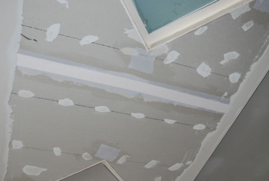 石膏板接縫處用紙繃布連接,嚴(yán)控開(kāi)裂現(xiàn)象的發(fā)生。